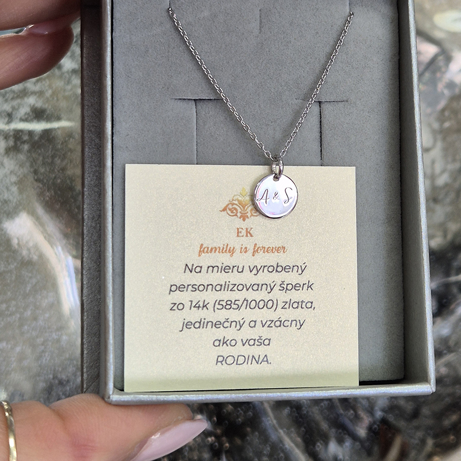 Zlatý medailón s gravírovaním – osobný šperk so symbolomZlatý medailón s gravírovaním je jemný a osobný doplnok, ktorý rozpráva váš príbeh. Na jednej strane nesie vašu iniciálu, na druhej strane symbol podľa výberu – srdce, labku, nekonečno, mesiac, dúhu alebo slnko.Každý symbol vyjadruje výnimočný vzťah, spomienku alebo emóciu, čím sa medailón stáva šperkom s hlbokým významom. Perfektný darček pre seba alebo pre blízkeho, ktorý spája eleganciu s osobným príbehom.