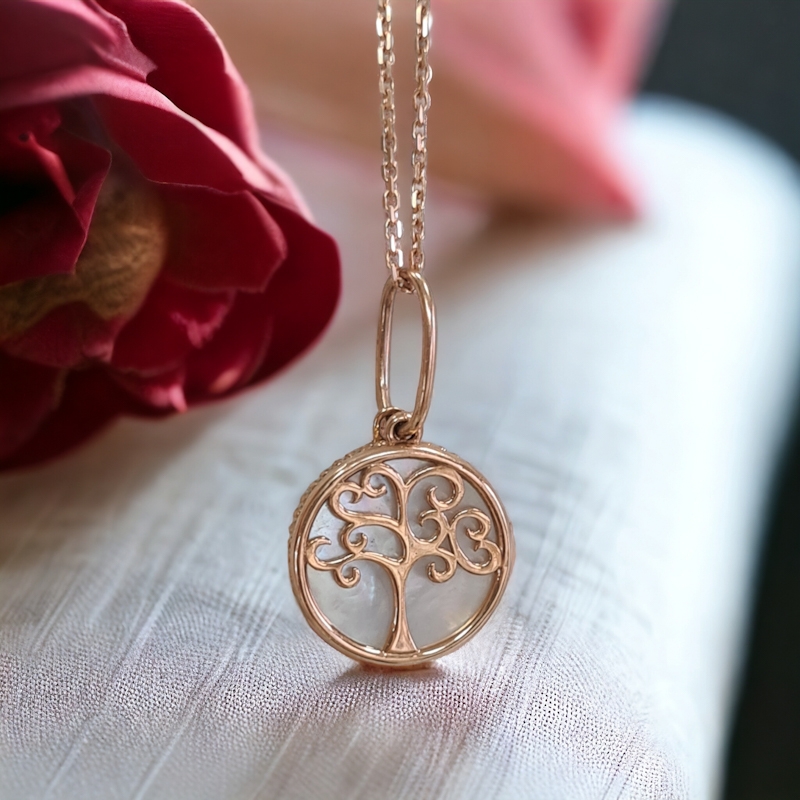 Prívesok z ružového zlata strom podložený perleťou