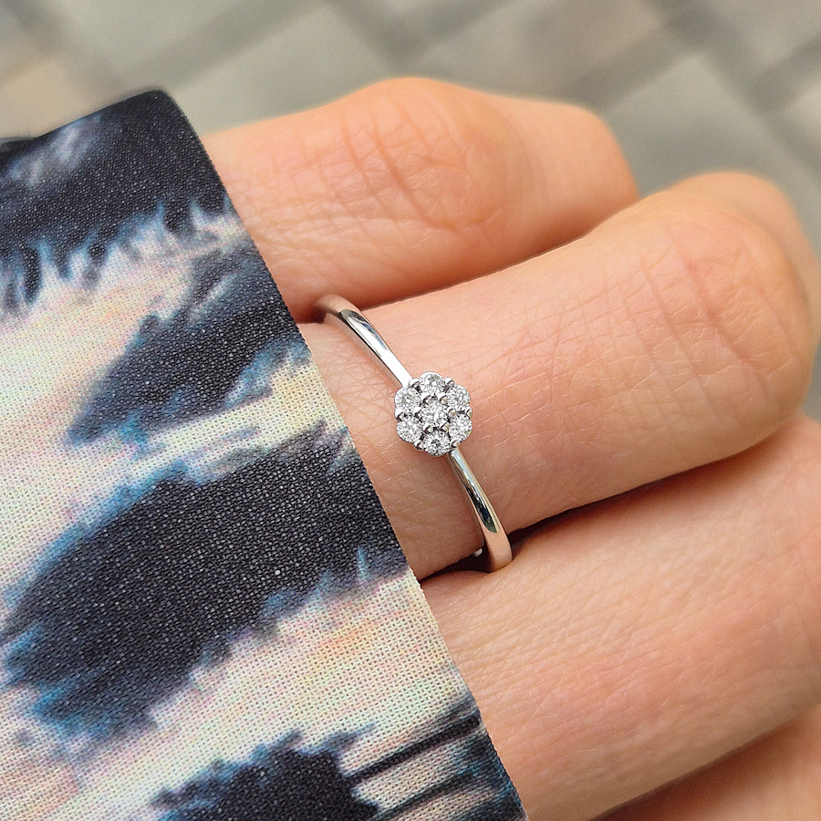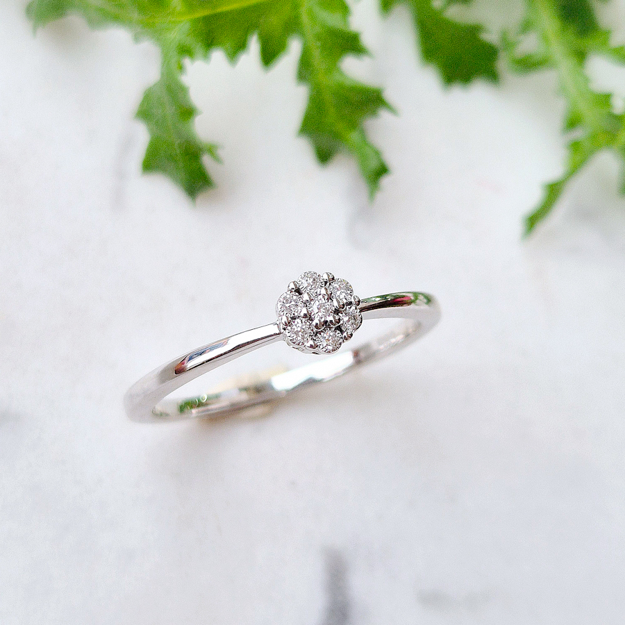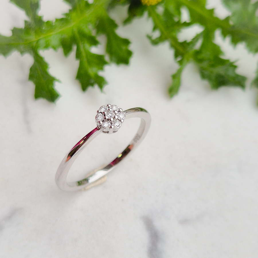 Prsteň z bieleho zlata s BRILIANTAMI v tvare kvietku
