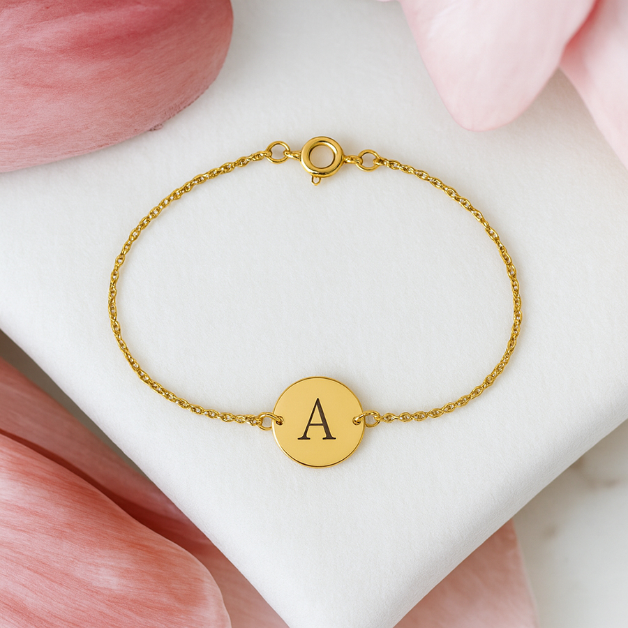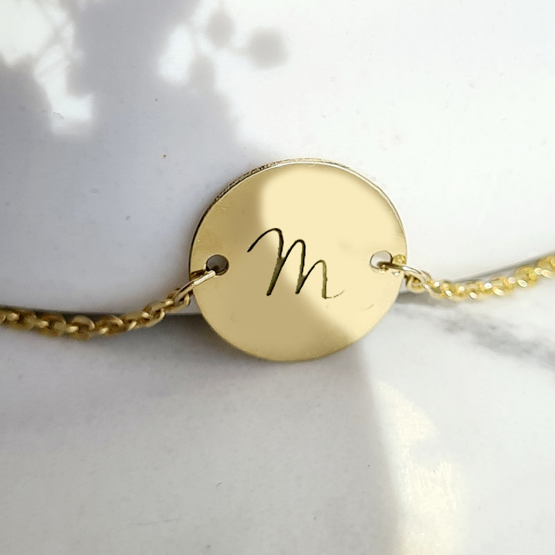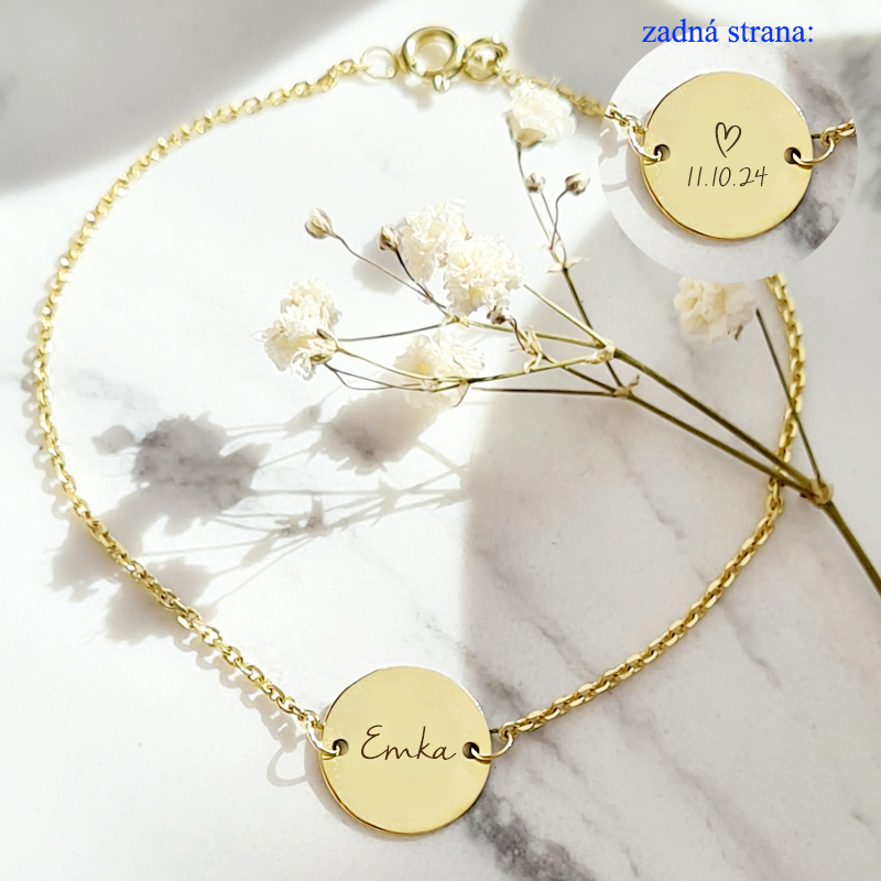 Zlatý náramok KRUH S gravírovaným MENOM, INICIÁLOU -14k zlato