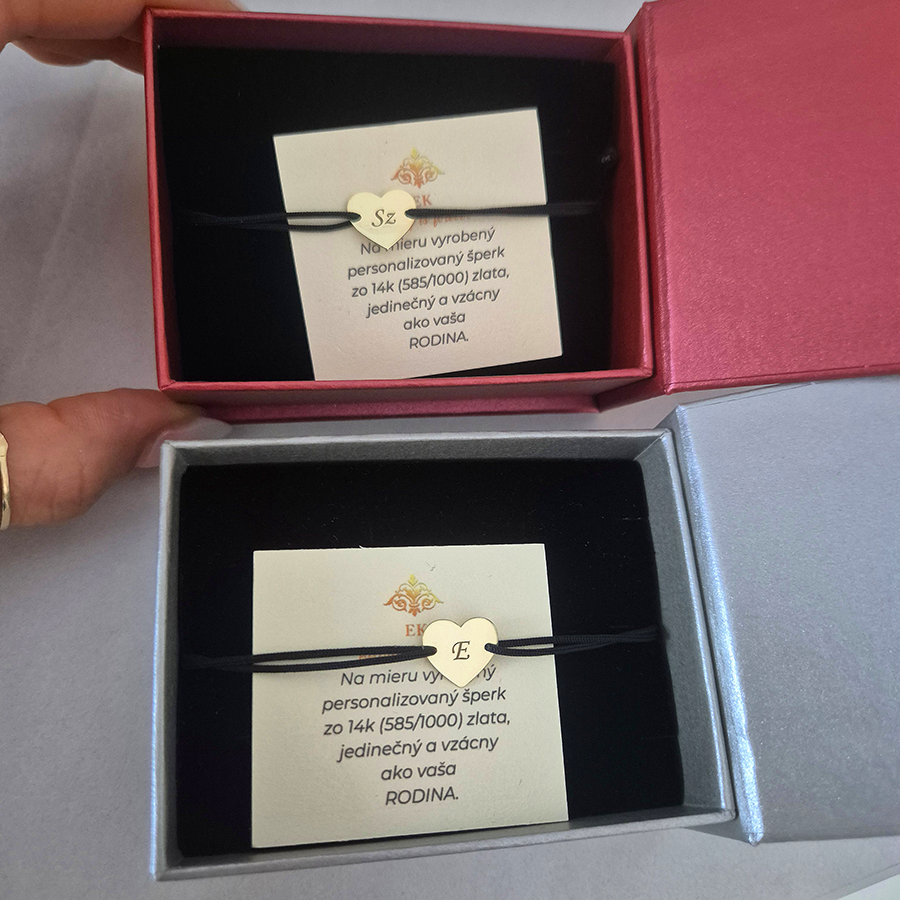 Zlatý náramok na červenej šnúrke so srdiečkomHľadáte darček, ktorý je jemný, elegantný a nadčasový? Tento zlatý náramok na červenej šnúrke so srdiečkom je ideálnou voľbou pre každú ženu aj mladé dievča. Spojenie červenej šnúrky a 14k zlatého srdiečka symbolizuje lásku, priateľstvo a ochranu. Vďaka možnosti gravírovania iniciály sa z neho stane výnimočný náramok – osobný doplnok, ktorý má dušu.Darujte blízkej osobe zlaté srdce na šnúrke ako symbol lásky, rodiny alebo priateľstva. Perfektný darček pre ženu, priateľku, mamu či dcéru – originálny šperk, ktorý sa stane obľúbeným každodenným talizmanom.