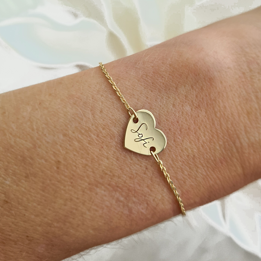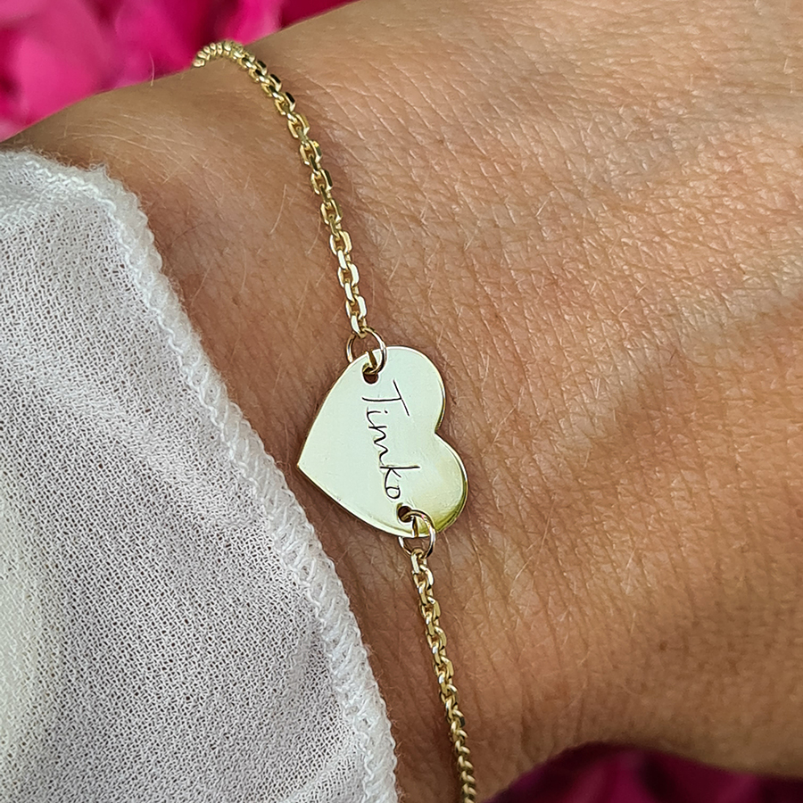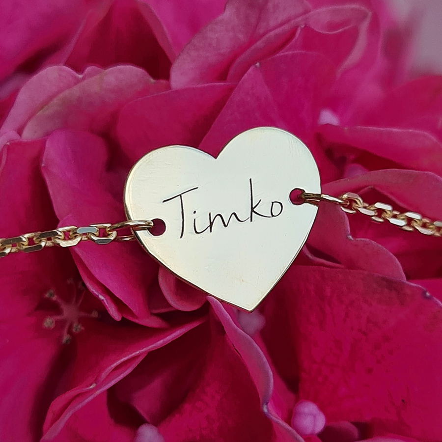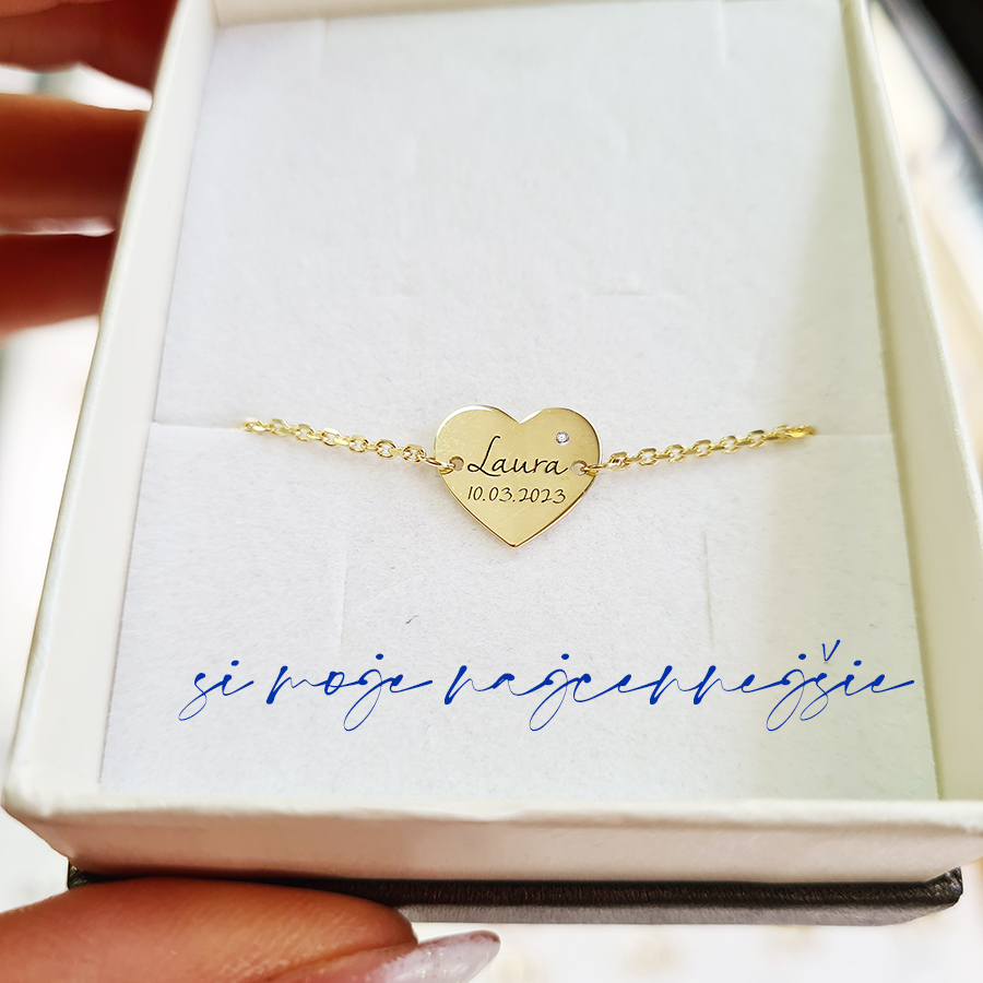Náramok so srdiečkom  v klasickom žltom alebo ružovom zlate  je jeden z najvyhľadávanejších náramkov, stále tak moderný a nadčasový symbol srdca je aj bez slov Vašim vyznaním. Ideálny darček. Na srdiečko zo žltého alebo ružového  14 karátového zlata si môžete vygravírovať  čokoľvek :), tak napríklad meno Vášho dieťatka, manžela, kamošky,  dátum narodenia či číslo, ktoré Vám nosí šťasti. Pridajte k menu symbol, ktorý si s milovanou osobou spájate! Čo tak nekonečno, slniečko alebo dúhu, na konci  ktorej nájdete ten váš poklad 🙂