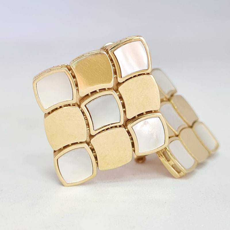 Zlaté extravagantné náušnice s perleťovými prvkami