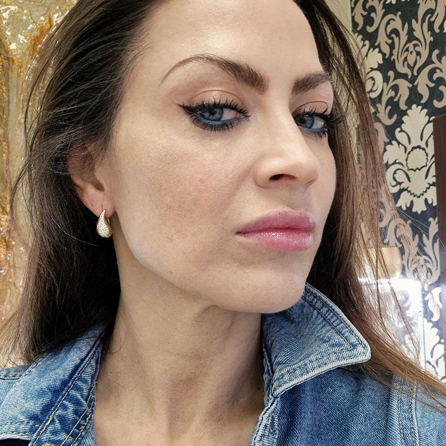 Náušnice v tvare kvapky sú luxusné a zároveň decentné. Predná časť „kvapky“ je pokrytá drobnými zirkónmi a zostávajúca čsť náušnice je krásne hladná, lesklá v príjemnom oválnom tvare kvapky. Tento kontrast medzi jednoduchým zlatým povrchom a ligotavými detailami zabezpečia eleganciu a nadčasovosť. Materiál : 14 karátové zlato Váha : 3,06 g Veľkosť : 2 cm