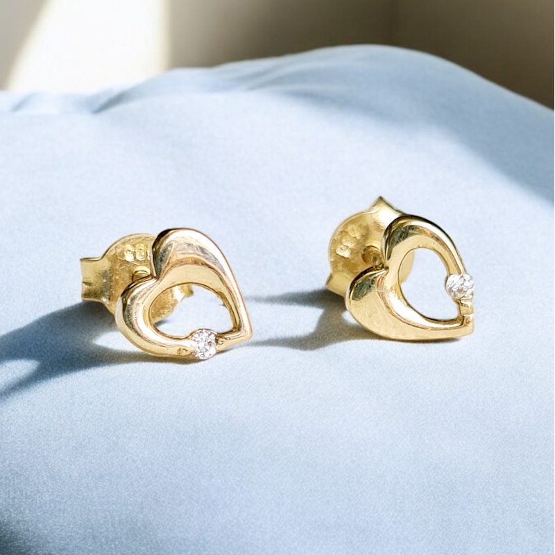 Zlaté náušnice napichovacie mini Srdce s briliantom