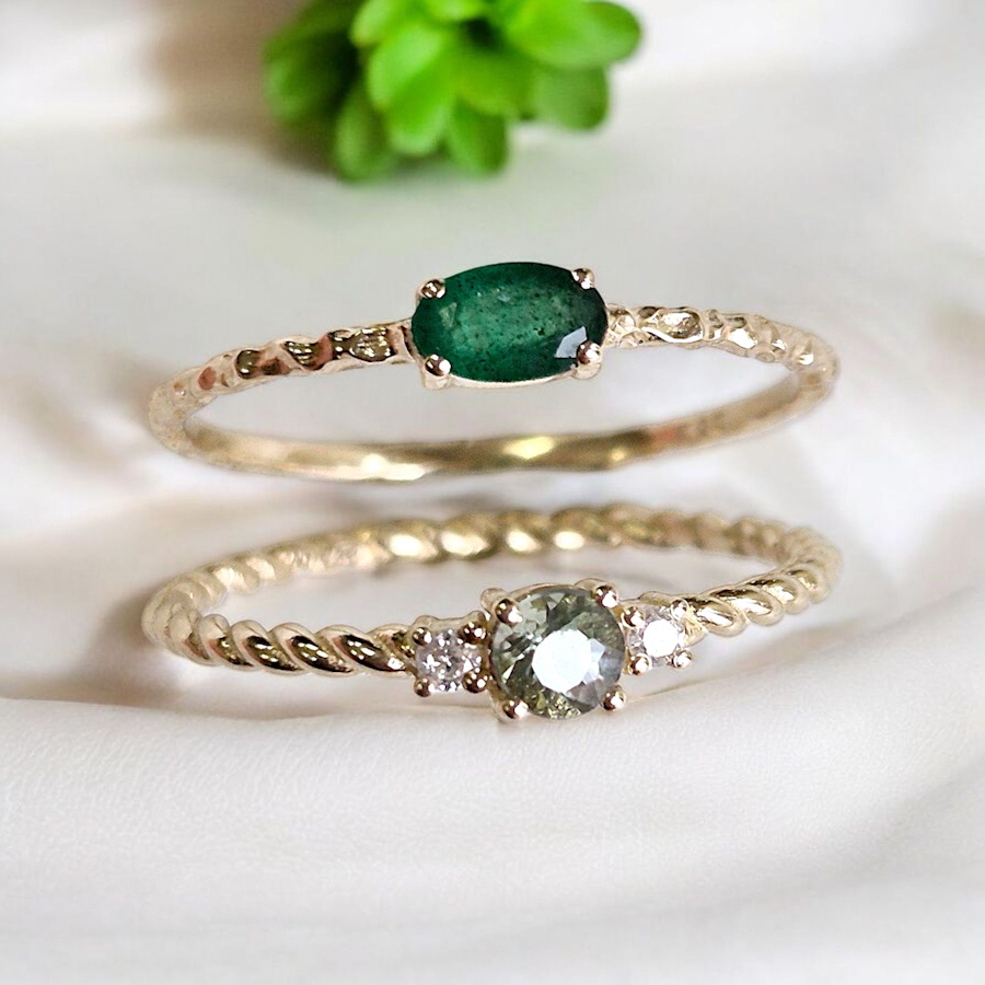 Zlatý BRILIANTOVÝ jemný prsteň so zeleným ZAFÍROM