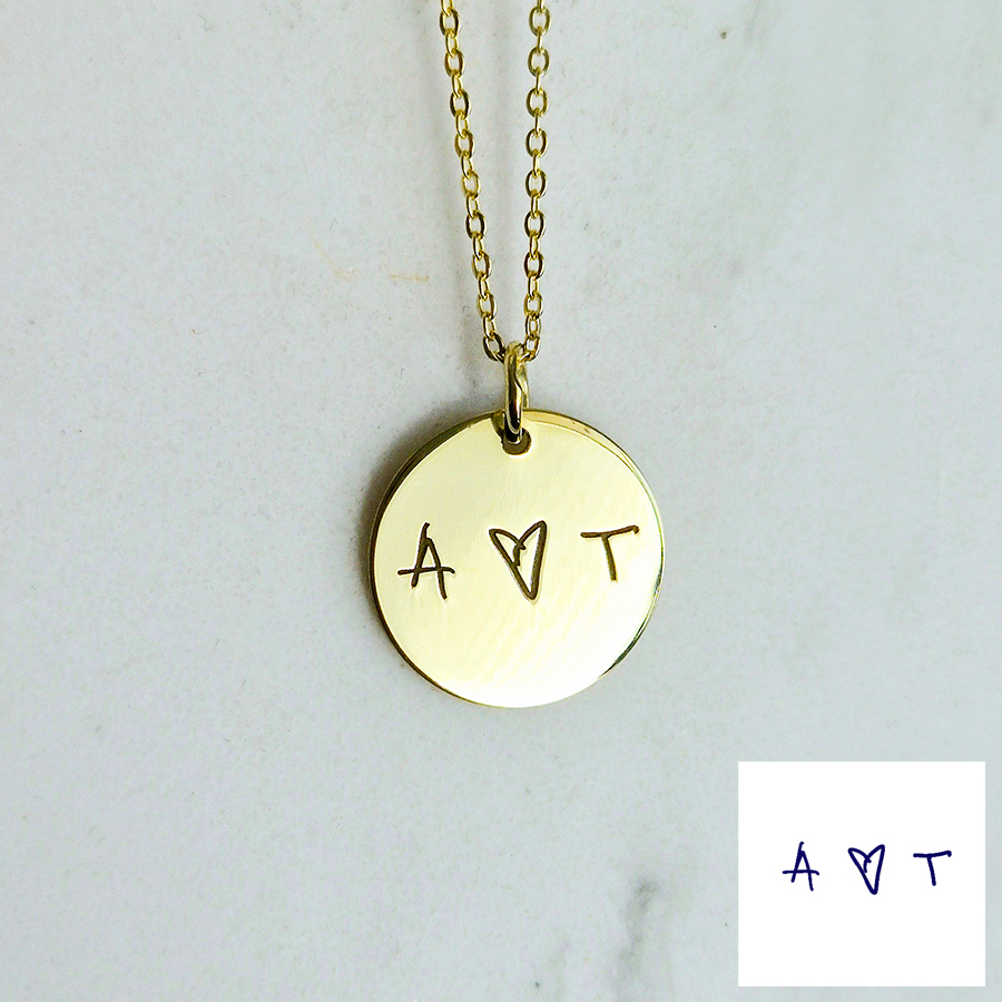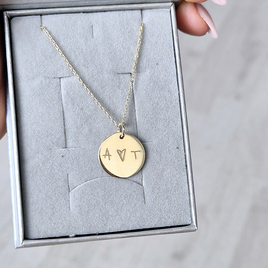 Zlatý medailón s gravírovaným vlastnoručným RUKOPISOM alebo s detskou KRESBOU – 14k zlato