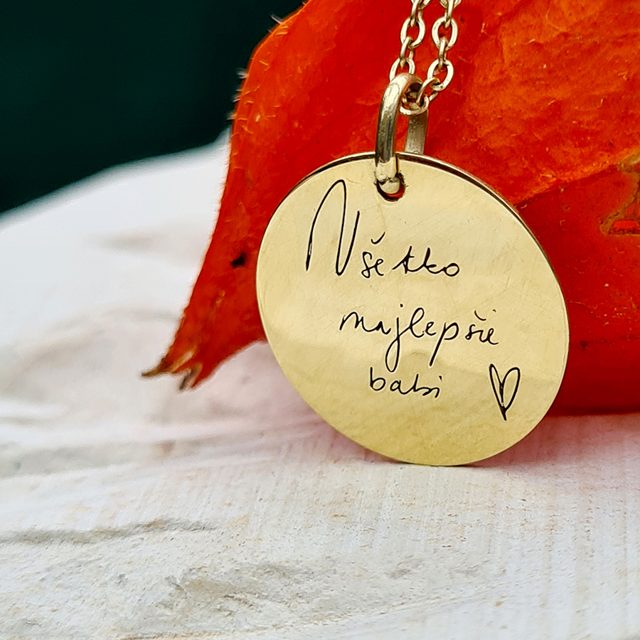 Zlatý prívesok s vašim autentickým rukopisom – jedinečný darček plný emóciíZlatý prívesok s vašim vlastnoručným venovaním, vyznaním alebo dokonca detskou kresbou sa stane nezabudnuteľným a dojímavým darčekom. Prekvapte manželku, milujúcu babičku alebo toho najlepšieho tatina či dedka elegantným a personalizovaným šperkom, ktorý nesie jedinečný osobný odkaz.