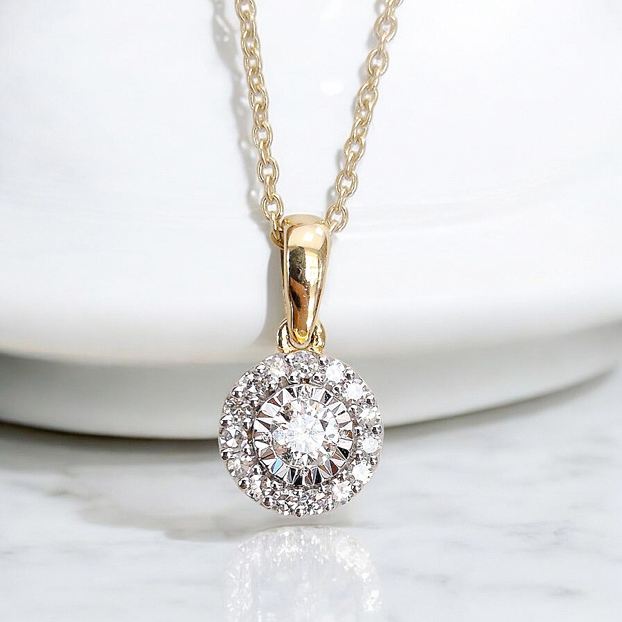 V ponuke máme i nádherný briliantový náhrdelník. Jeho centrálnu časť tvorí okrúhly briliant, ktorý je podporený drobnými, do kruhu usporiadanými briliantami. Pôsobí veľmi elegantne a luxusne s krásnymi odleskami vďaka dokonalému brusu diamantu. Je to najviac cenený drahokam pre jeho trvácnosť, lebo diamanty sú odolné a večné. Často symbolizujú lásku, večnosť a luxus. Sú obľúbenou voľbou pri zásnubách a výnimočných príležitostiach. Navyše si vyžadujú vysokú úroveň šperkárskeho umenia. Materiál : 14 karátové zlato Váha šperku : 1.95 g Váha briliantu : 0,15 ct Farba a čistota : GH, SI Dĺžka : 38 – 42 – 45 cm K uvedenému šperku je vhodné skombinovať do súpravy náušnice i prsteň. Viď SÚVISIACI TOVAR