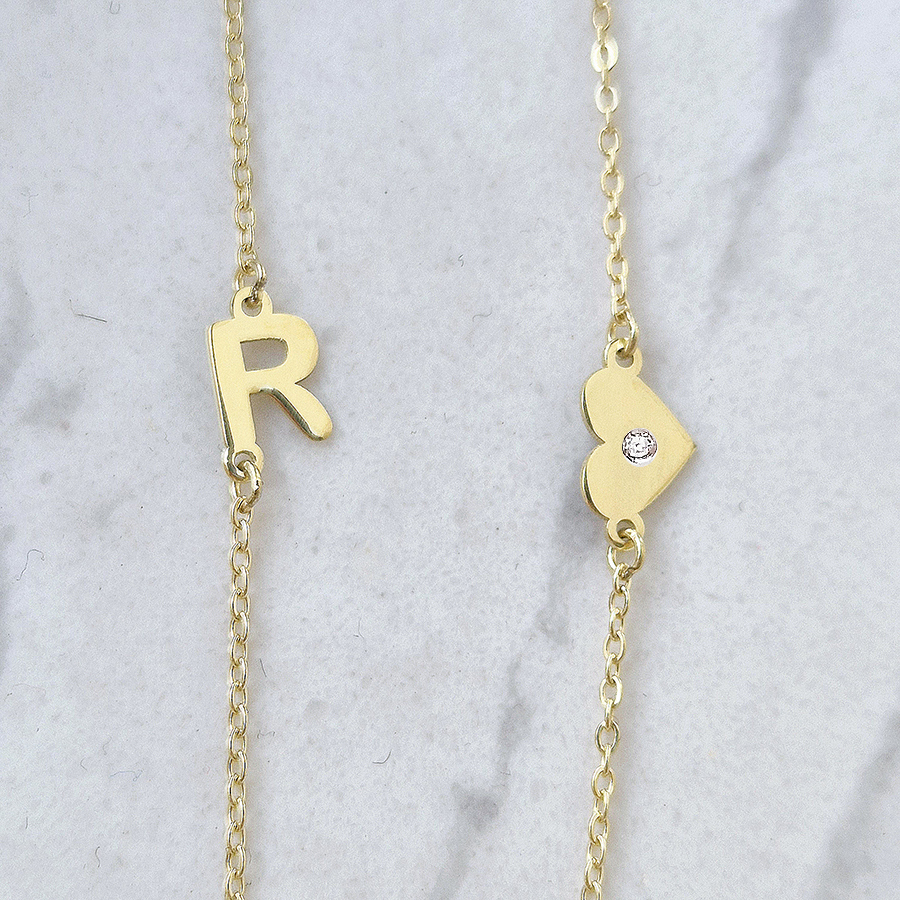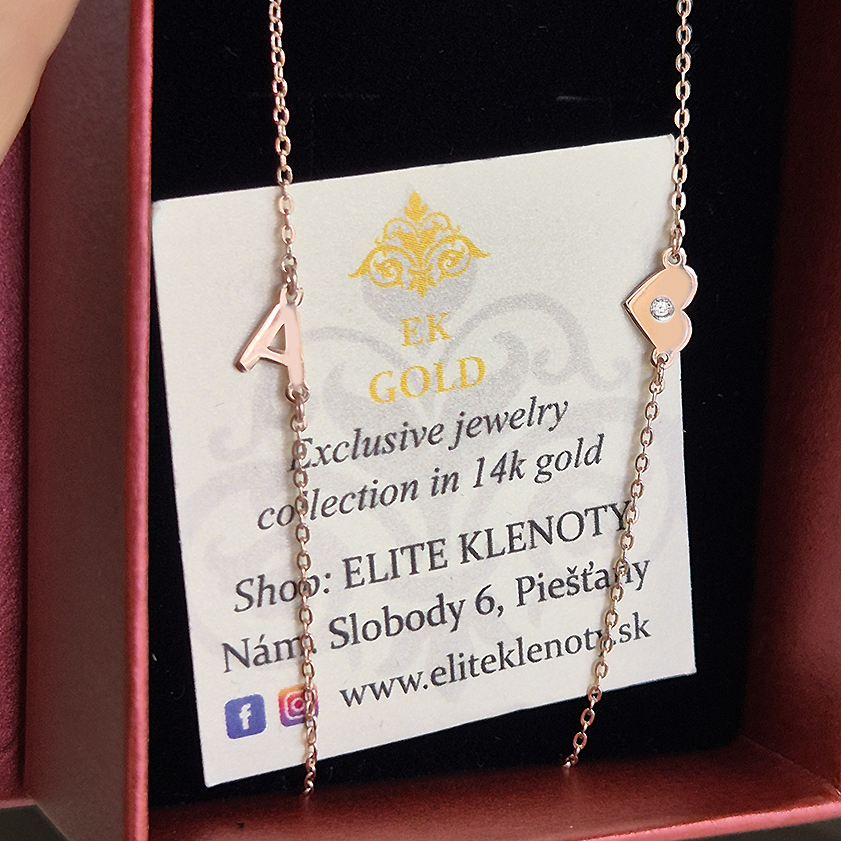 Zlatý náhrdelník s BRILIANTOM a PÍSMENKOM + ♥ – 14k zlato