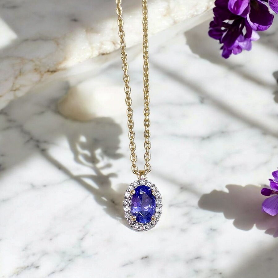 Zlatý náhrdelník s príveskom TANZANIT A BRILIANTY