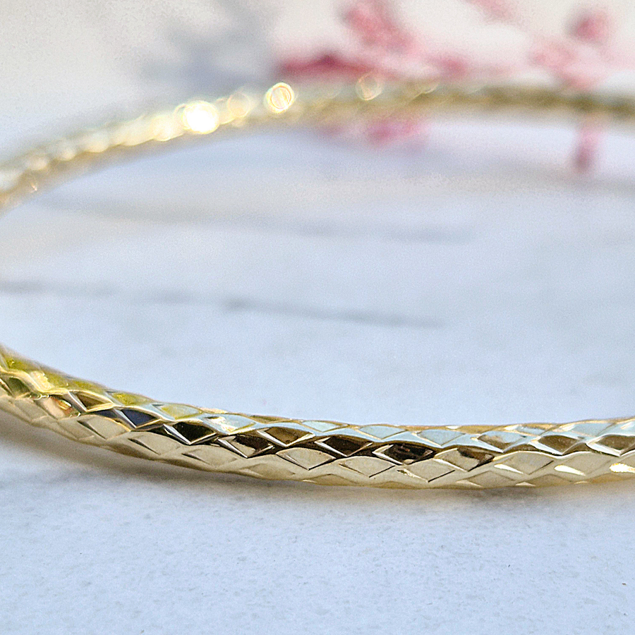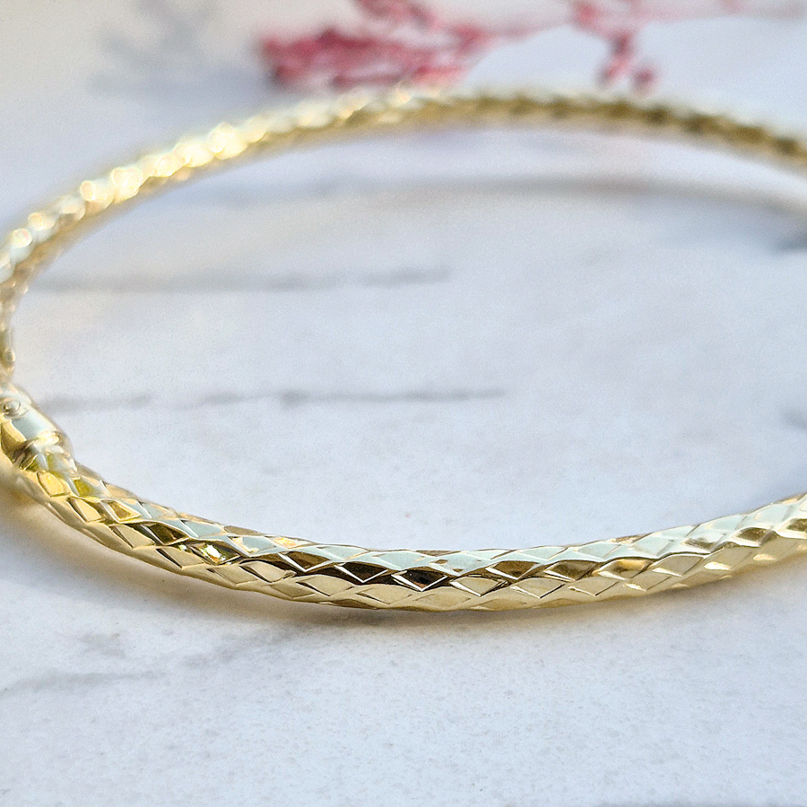 Zlatý náramok bangle s fazetovaným gravírom