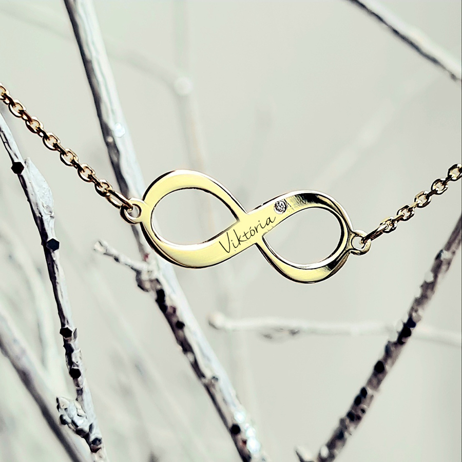 Zlatý náramok nekonečno na zlatej retiazke je jeden z najobľúbenejších šperkov. Nekonečno, alebo aj infinity, je vnímaný ako symbol nekonečnej lásky alebo priateľstva. Tento náramok je trendový a nadčasový. Ideálny darček pre milovanú osobu. Na nekonečno si môžete vygravírovať meno Vášho dieťatka, manžela, alebo číslo, ktoré Vám nosí šťastie.