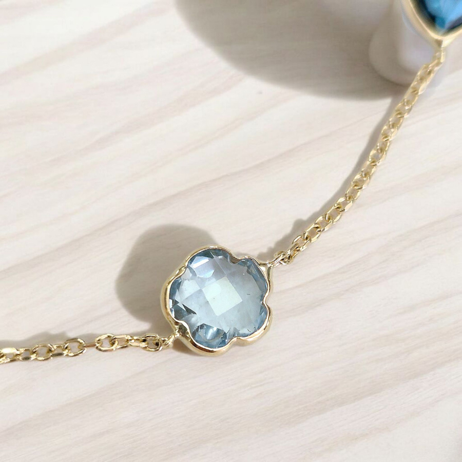 Zlatý náramok retiazkový s AQUAMARÍNOM a TOPAZOM
