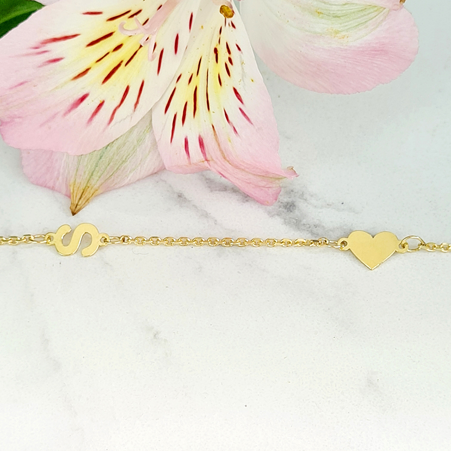 Zlatý náramok s PÍSMENKOM a SRDIEČKOM -14k zlato