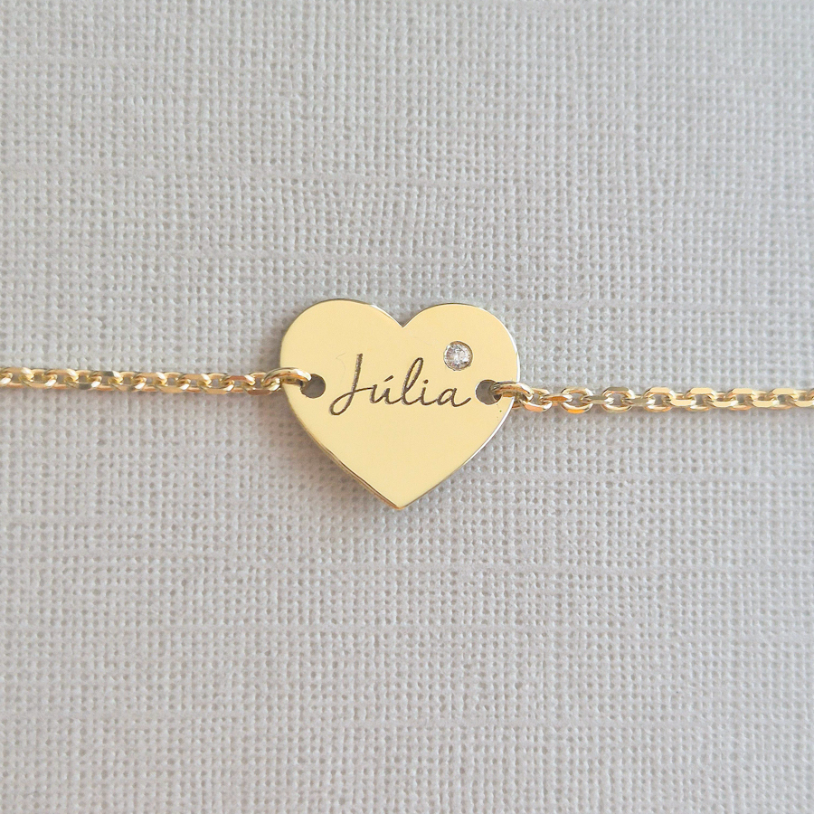 Zlatý náramok SRDCE s BRILIANTOM a MENOM