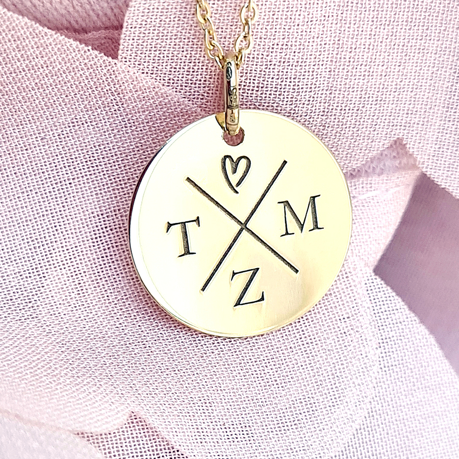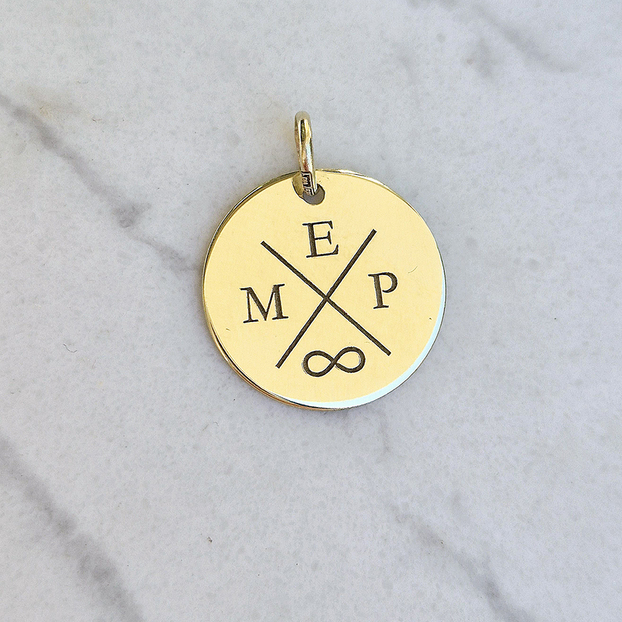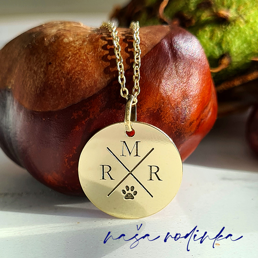 Zlatý prívesok KRUH s gravírovanými INICIÁLAMI RODINY a SYMBOLOM – 14k zlato