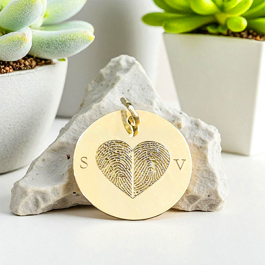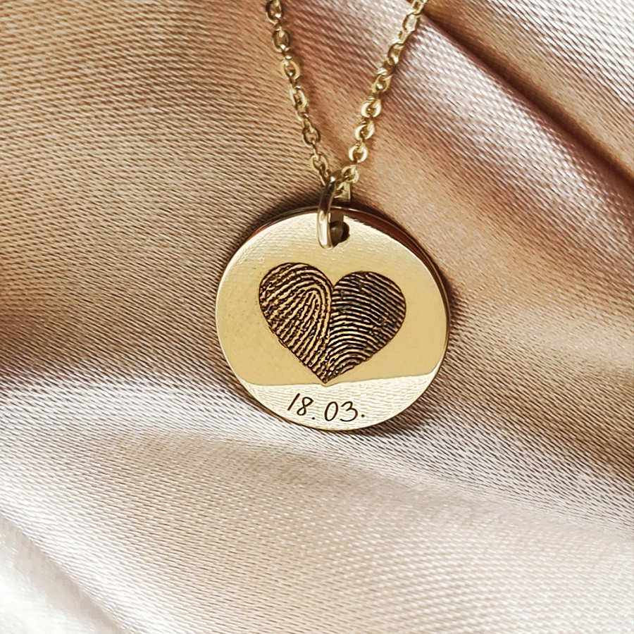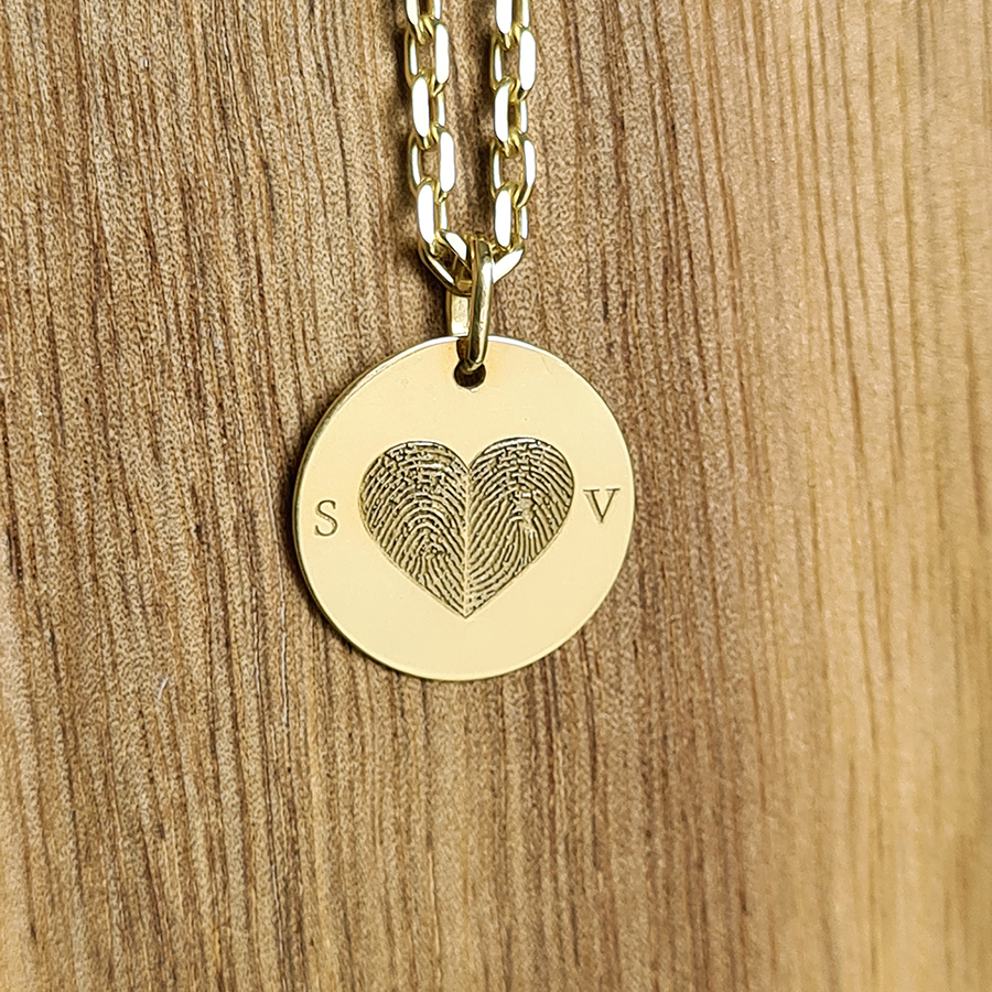 Zlatý prívesok v tvare kruhu – jedinečný personalizovaný šperk s gravírovaním odtlačkovTento personalizovaný zlatý prívesok zo 14k zlata je ideálnym spôsobom, ako zachovať rodinné väzby a osobné príbehy. Kruh je symbolom jednoty, života, rodiny a dobra, a v spojení s možnosťou gravírovania jedinečných odtlačkov prstov, mien, dátumov alebo iniciál sa stáva originálnym darčekom, ktorý nesie osobný význam.Každý odtlačok je jedinečný a neopakovateľný, čo robí tento šperk výnimočným a osobným. Personalizovaný zlatý prívesok je dokonalý darček pre ženy aj mužov, ktorí ocenia jedinečné, rodinné šperky a originálne zlaté doplnky s hlbokým významom.Ako spraviť odtlačok prsta Návod ako si ľahko vyhotoviť odtlačok prsta nájdete na tejto stránke. Otlačok odfoťte, ideálne pri dobrom svetle pri okne, alebo pod lampou, so zaostrením, aby bolo vidieť línie otlačku. Fotku odtlačku (súbor jpg.max5MB) nahrajte pri objednávke do okienka na to určeného.