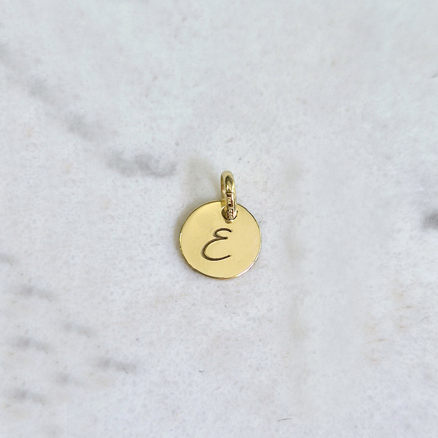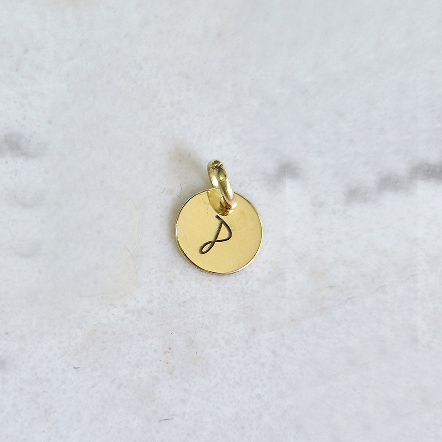 Zlatý prívesok MINI DISK s gravírovanou INICIÁLOU – 14k zlato