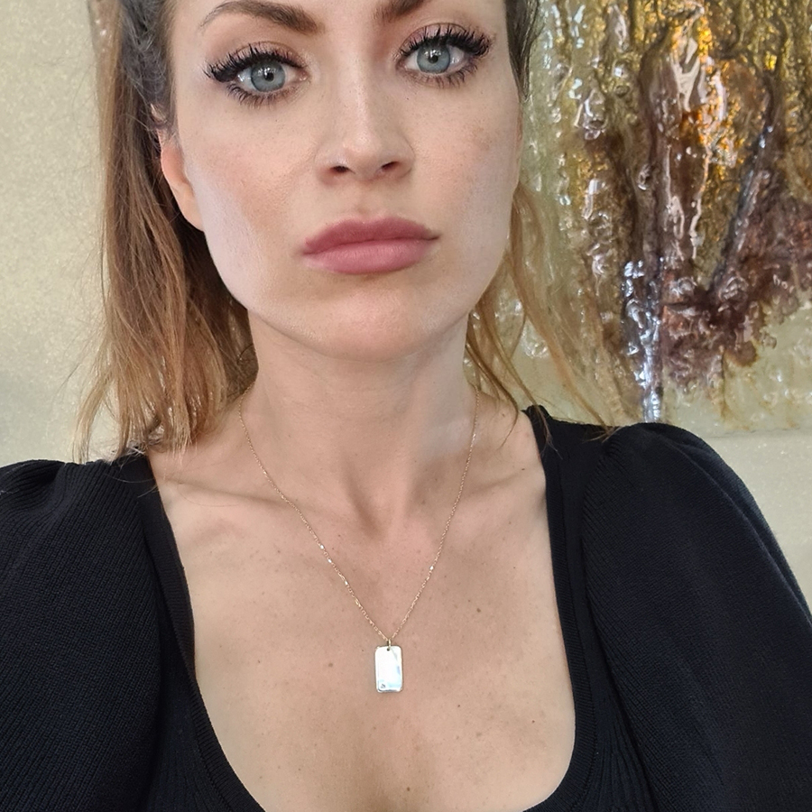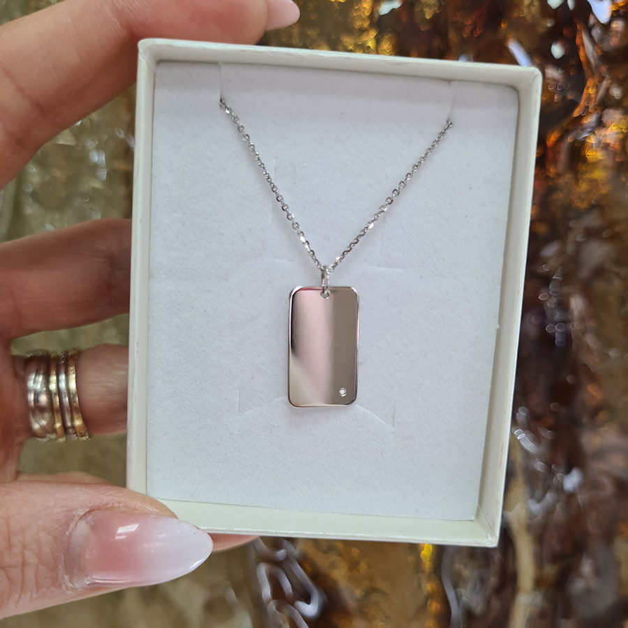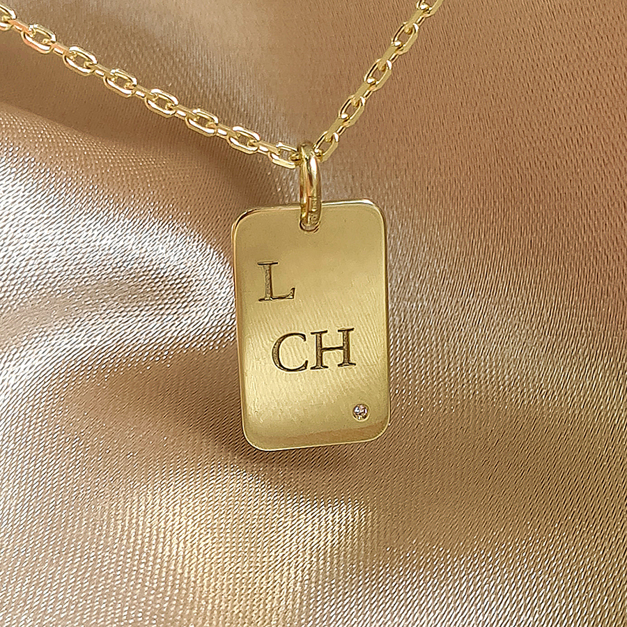 Zlatý prívesok PLATNIČKA s BRILIANTOM a gravírovaným MENOM – 14k zlato