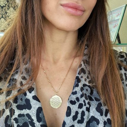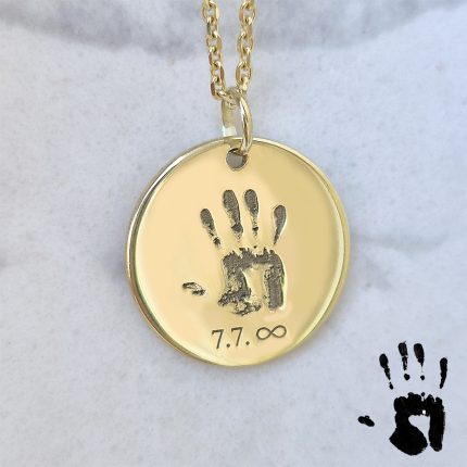 Zlatý prívesok KRUH s ODTLAČKAMI v tvare SRDCA -14k zlato