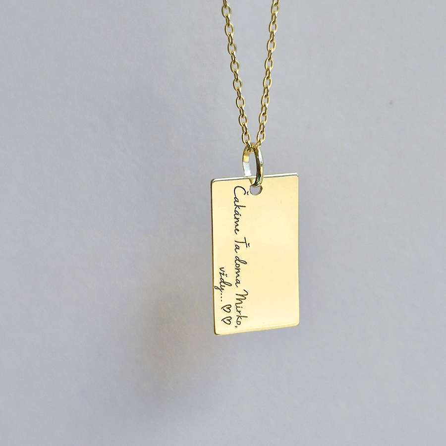 Zlatý prívesok PLATNIČKA s gravírovaným MENOM, ODKAZOM – 14k zlato