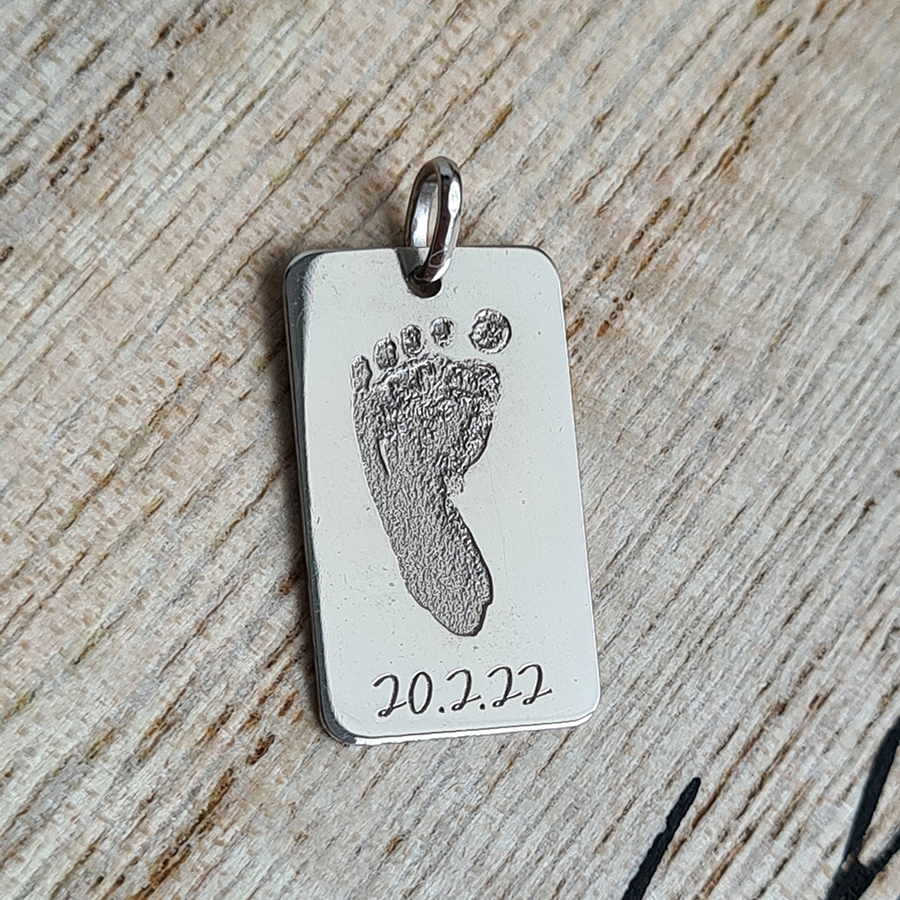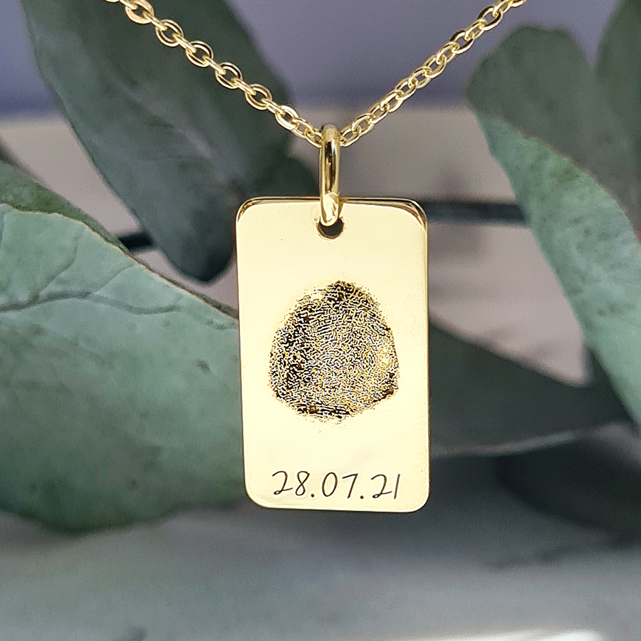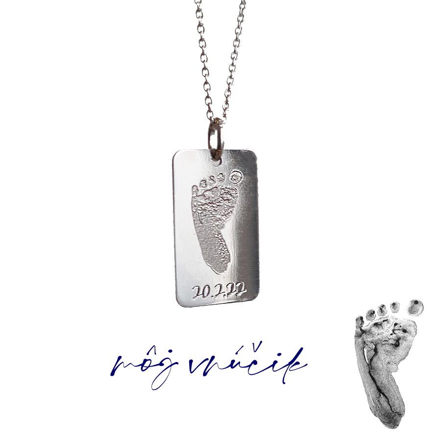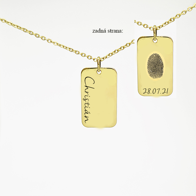 Zlatá platnička s odtlačkomZlatá platnička s odtlačkom je výnimočne osobný šperk pre mamičky aj oteckov. Veď viete, ako rýchlo ten čas letí – zvečnite na platničku odtlačok rúčky alebo nôžky svojho dieťatka, kým je ešte maličké.Pod odtlačok môžeme vygravírovať meno, dátum narodenia či pôrodnú váhu, vďaka čomu sa tento šperk stane trvalou spomienkou na prvé chvíle vášho pokladu.Ako spraviť odtlačok prsta na personalizovaný šperkNávod ako si ľahko vyhotoviť odtlačok prsta nájdete na tejto stránke. Odtlačok odfoťte, ideálne pri dobrom svetle pri okne, alebo pod lampou, so zaostrením, aby bolo vidieť línie otlačku.  Následne fotku odtlačku(súbor jpg.max5MB) nahrajte pri objednávke do okienka na to určeného.