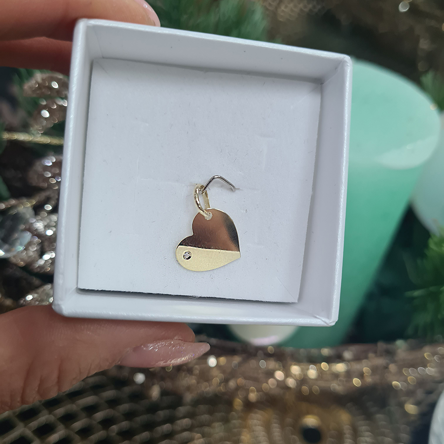 Romantický zlatý prívesok s osadeným pravým briliantom je hodnotným šperkom, darčekom pre špeciálne príležitosti, alebo len tak pre radosť. Prívesok, ktorý je aj bez slov Vašim osobným vyznaním. Na srdiečko môžete vygravírovať iniciálu Vášho dieťatka, životnej lásky, alebo naj-kamošky.