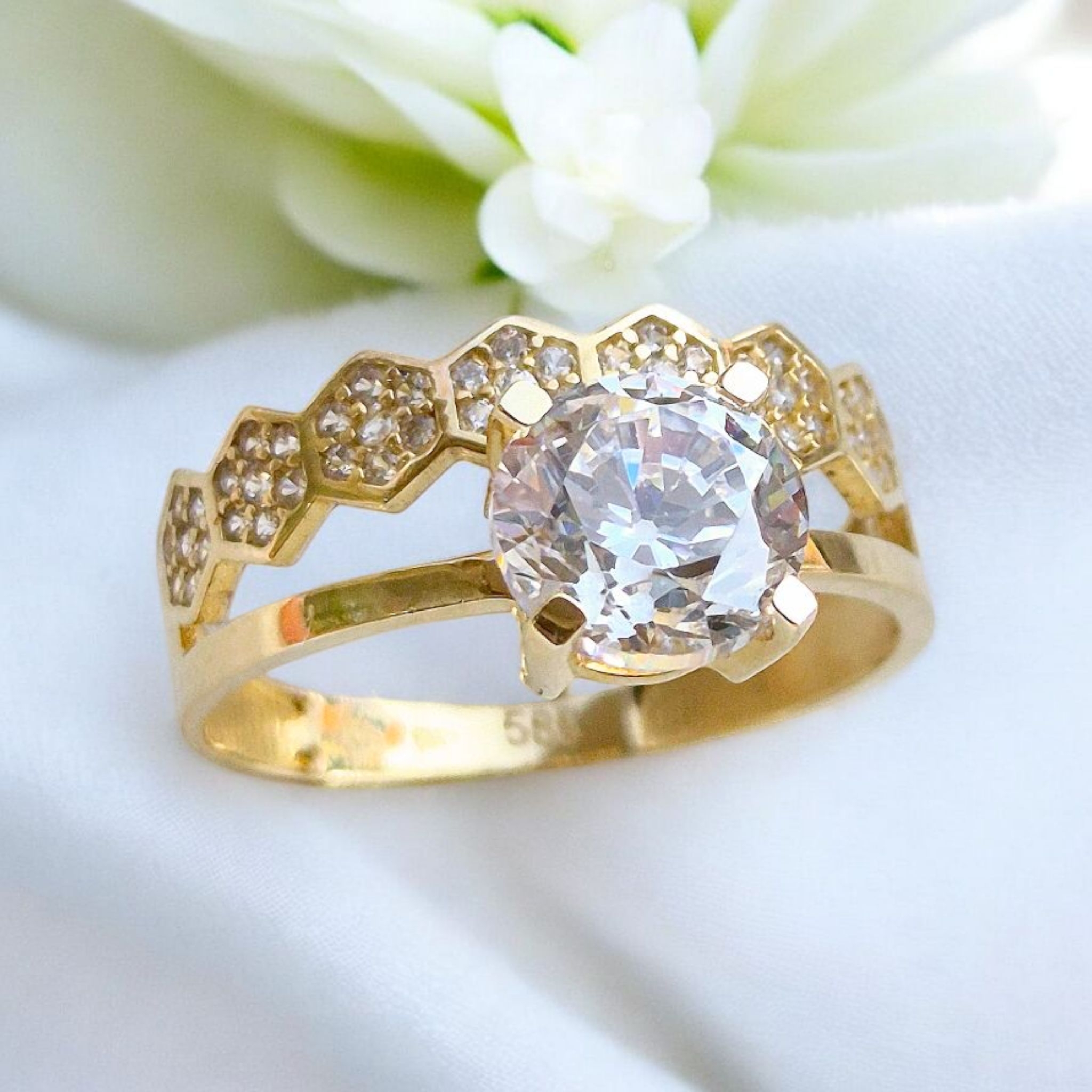 Zlatý prsteň dvojitý s centrálnym zirkónom a vykladanou obrúčkou