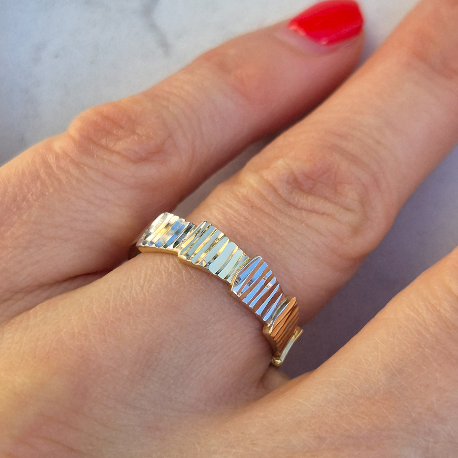 Zlatý prsteň s nepravidelnými platničkami
