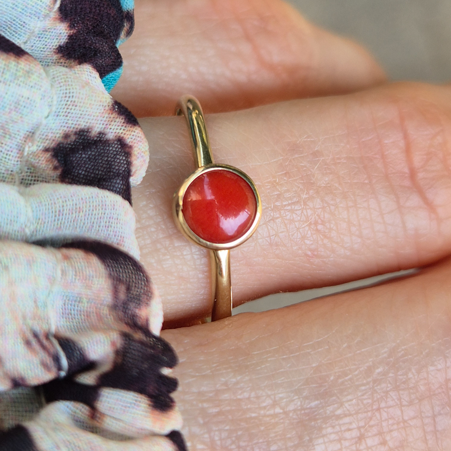 Jednoduchý dizajn, ale nádherný prsteň s koralom budete milovať. Je kombinovateľný i so zložitejšími tvarmi prstienkov a je nositeľný na každý deň. Nádherná , typická farba koralu, je nevtieravá, menej lesklá, ale to je znak prírodného drahokamu. Traduje sa, že koral je silný ochranný drahokam, ktorý ľuďom darovali bohovia. Nosili ho Egypťania i staroveký Tibeťania. Je to silný amulet proti anémii a depresii, slúži na dobrú energiu a celkovo stráži zdravie majiteľky. Material : 14 karátové zlato Váha : 1,58 g Veľkosť : 59 K uvedenému šperku je vhodné skombinovať do súpravy náramok i náhrdelník . Viď SÚVISIACI TOVAR